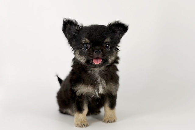かわいいブラック&タンのチワワの男の子が入園いたしました!ちょっぴり怖がりな甘えんぼくんです、ぜひ会いに来てくださいね(^^♪