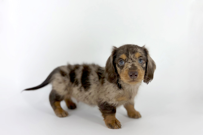 とってもレアなチョコレートダップルのダックスくんが入園しました!!ムチムチなわがままボディ♡♡短い脚でよちよち歩く姿をぜひ見にきてくださいね(^^♪